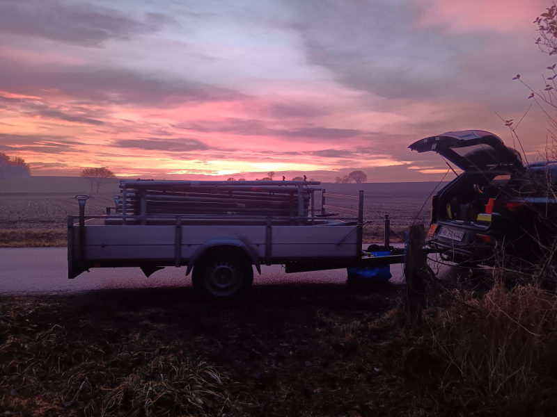 Die Kräfte unserer Freiwilligen wurden auf eine harte Probe gestellt, da insgesamt 18 Vertikalrahmen eingerammt werden mussten. Die Arbeit verlangte uns allen viel ab, und es zeigte sich, wie wichtig eine gute Zusammenarbeit und gegenseitige Unterstützung sind. Zum Glück konnten wir zwischendurch eine wohlverdiente Pause einlegen, die für alle eine willkommene Erholung darstellte.