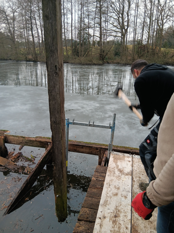 Am Ende des Tages konnten wir stolz auf unser Werk blicken: Der neue Steg war fertiggestellt und wieder begehbar. Dies ist ein großer Gewinn für alle Vereinsmitglieder und besonders für die Angler unter uns, die nun wieder einen sicheren und stabilen Zugang zum Wasser haben. Die Erneuerung des Stegs ist ein weiteres Beispiel dafür, was wir gemeinsam erreichen können, wenn wir unsere Kräfte bündeln und zusammenarbeiten.