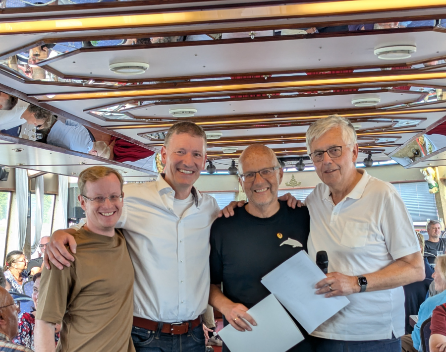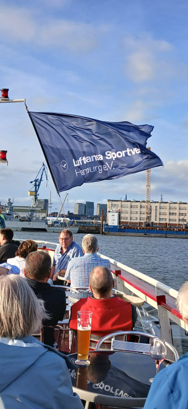 Spätestens als die LSV-Fahne auf der „Commodore“ gehisst war und der LSV-Vorstand die Anwesenden begrüßt hatte, konnte die diesjährige Barkassenfahrt losgehen. Rund 100 LSV-Mitglieder genossen die dreistündige Fahrt durch den Hafen, das perfekte Wetter und die gute Stimmung an Bord. Ganz besonders freute sich Kai-Ingmar Weikert, der während der Fahrt für sein jahrelanges Engagement mit der Goldenen Ehrennadel ausgezeichnet wurde.