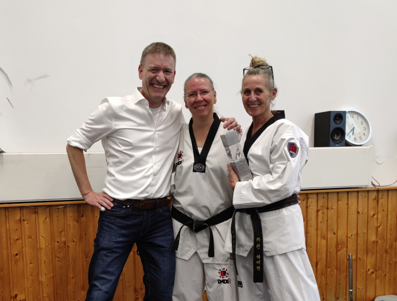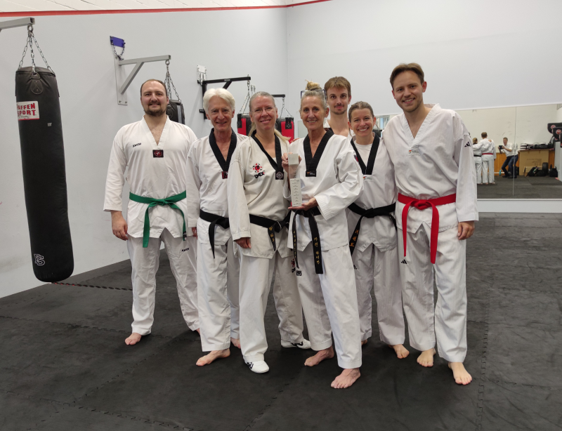 Mit ganz viel Leidenschaft und einem feinen Gespür für Ihre Schüler:innen leiten Kathrin und Karen seit fünf Jahren das Training im LSV, nehmen an Turnieren teil, begleiten ihre Schüler:innen und repräsentieren den LSV auf vorbildliche Weise. 2021 hatten sie den koreanischen Kampfsport zum LSV gebracht und haben ihn seitdem mit viel Engagement etabliert. Neben den Trainingseinheiten finden regelmäßig Gürtelprüfungen statt, und drei Mitglieder führten sie sogar zum Meistergrad (Dan). „Ich hätte nie gedacht, dass ich das mal schaffen würde“, sagt Jana Hermenau, die eine der drei Dan-Träger:innen und Spartenleiterin Taekwondo ist. Und auch ihre eigenen sportlichen Qualitäten bauen die Trainerinnen stetig aus: Erst Ende 2024 legte Kathrin erfolgreich ihre Prüfung zum 3. Dan ab, und Karen erreichte sogar den 6. Dan! Neben der sportlichen Entwicklung fördern die beiden auch das Miteinander und die persönliche Entwicklung aller Schüler:innen. Die gesamte Trainingsgruppe bildet eine tolle Einheit, die sich auch abseits des Sports regelmäßig trifft, wofür nicht zuletzt Kathrin und Karen mit ihrer offenen, zuversichtlichen und humorvollen Art sorgen. Ihre Begeisterung ist ansteckend und in Kombination mit ihrer Erfahrung und ihren sportlichen Fähigkeiten ein großer Gewinn für den Verein.