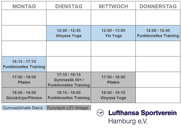 Dreimal pro Woche bietet der LSV den Kurs Funktionelles Training an. Das abwechslungsreiche und vielseitige Ganzkörpertraining sorgt für eine Steigerung …