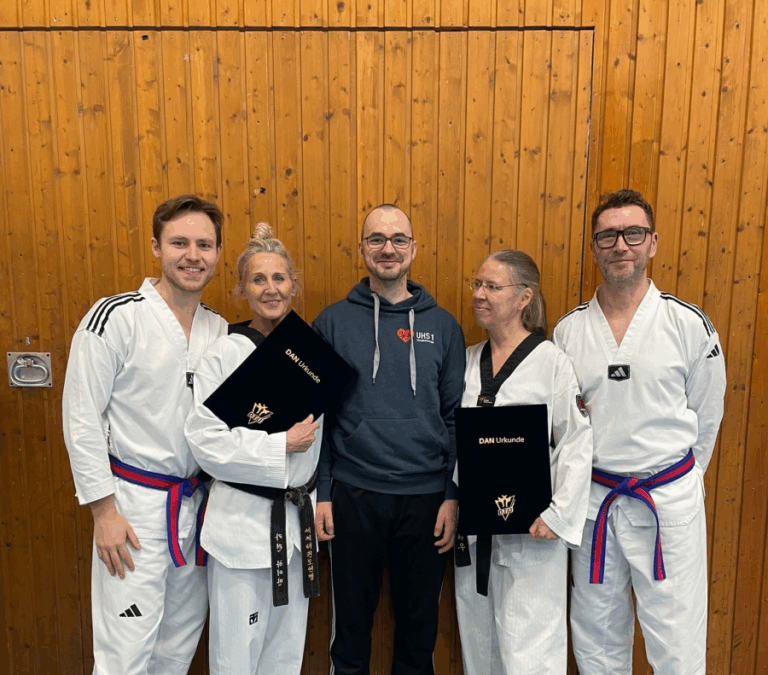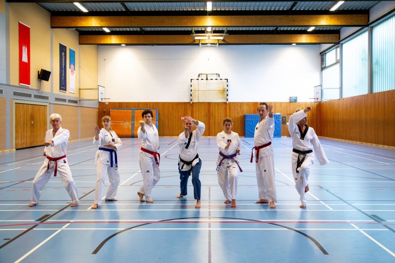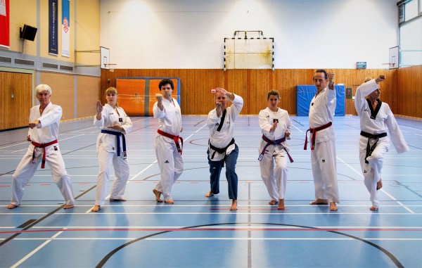 Taekwondo ist eine koreanische Kampfkunst der waffenlosen Selbstverteidigung. Die drei Silben des Namens stehen für Fußtechnik (tae), Handtechnik (kwon) und Weg (do). Es handelt sich dabei um einen Sport mit sehr dynamischen Bewegungen, der in jedem Alter erlernt und ausgeübt werden kann. Körper und Geist werden gleichermaßen in Einklang gebracht. Bei uns sind auch Kinder ab 12 Jahren willkommen. Kinder im Alter von 8 bis 11 Jahren können bei uns in Begleitung eines aktiven Erwachsenen ebenfalls Taekwondo lernen. Dies hat sich in der Vergangenheit als schöne Möglichkeit der verbindenden Aktivität zwischen den Generationen erwiesen.