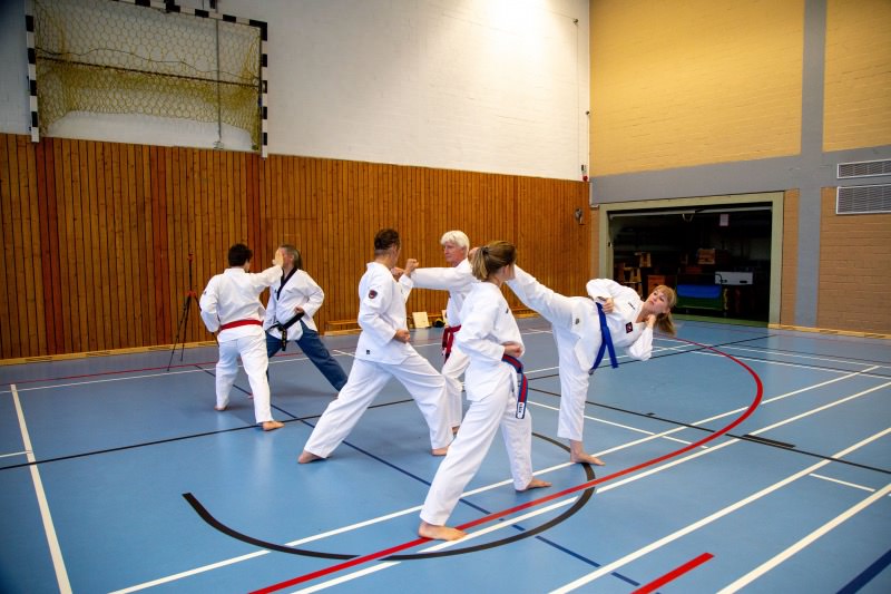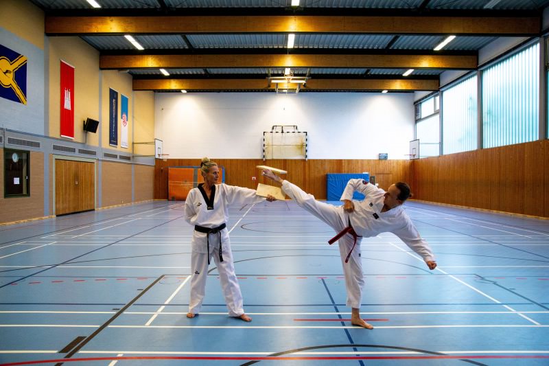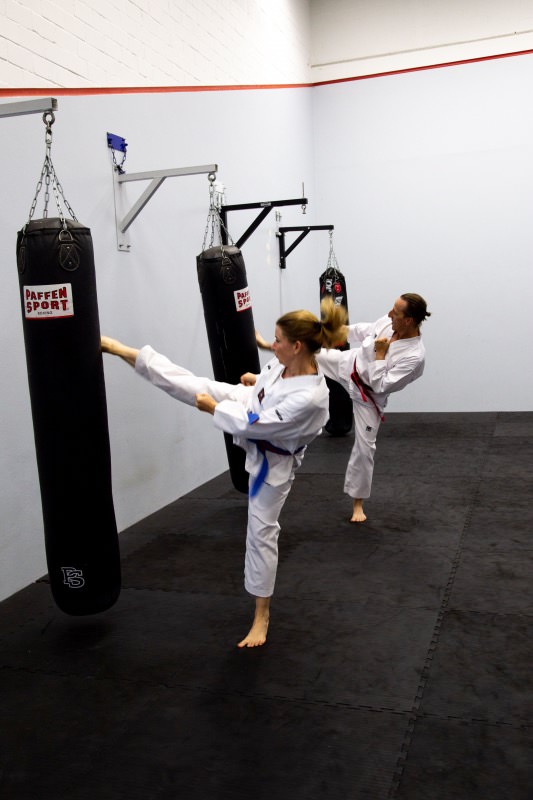 Probetraining jederzeit dienstags und donnerstags zu den angegebenen Zeiten. Eine Anmeldung ist nicht erforderlich. Ihr benötigt bequeme Sportkleidung und keine Schuhe, da Taekwondo barfuß betrieben wird.